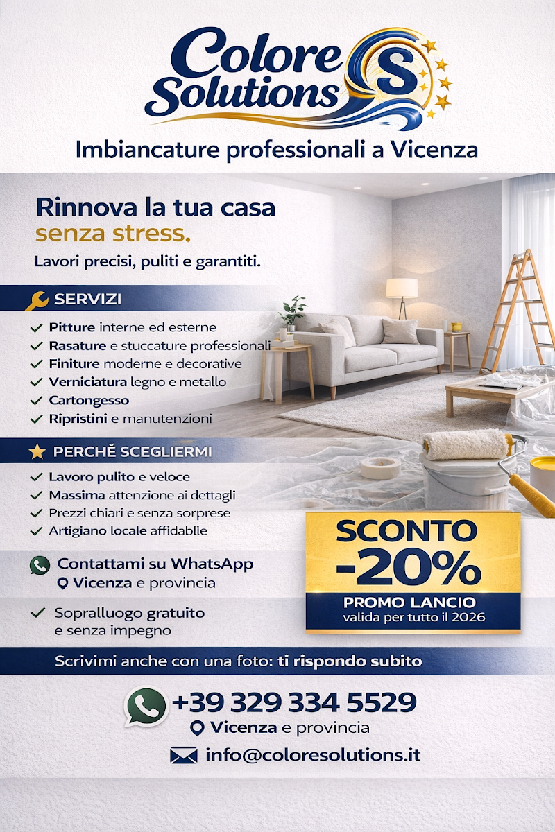 Ho contattato Colore Solutions per imbiancare il mio appartamento e sono rimasto davvero soddisfatto. Lavoro preciso, pulito e molto professionale. Le pareti sono venute perfette e i tempi sono stati rispettati. Inoltre è stato molto disponibile nel consigliare i colori migliori per la casa. Ottimo rapporto qualità-prezzo. Consiglio sicuramente a chi cerca un imbianchino serio e affidabile!
