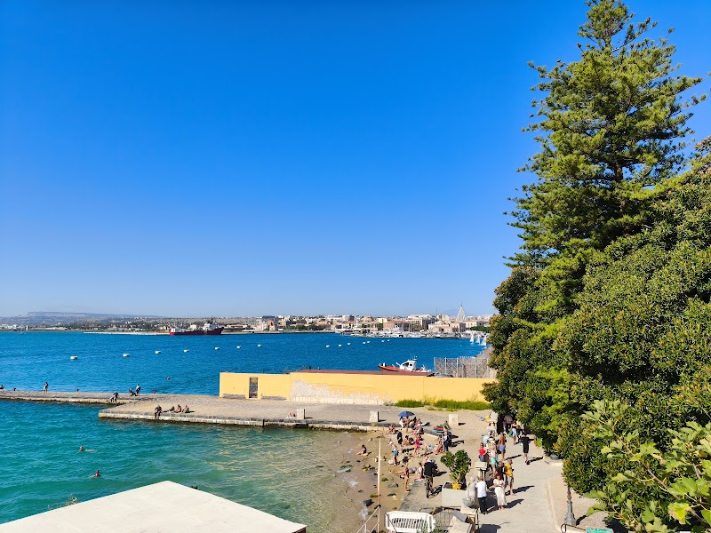 piccola spiaggetta da valorizzare maggiormente e punto di passaggio turistico che si affaccia sul porto grande di Siracusa... accessibile anche per persone disabili... da li vedi un tramonto fantastico..