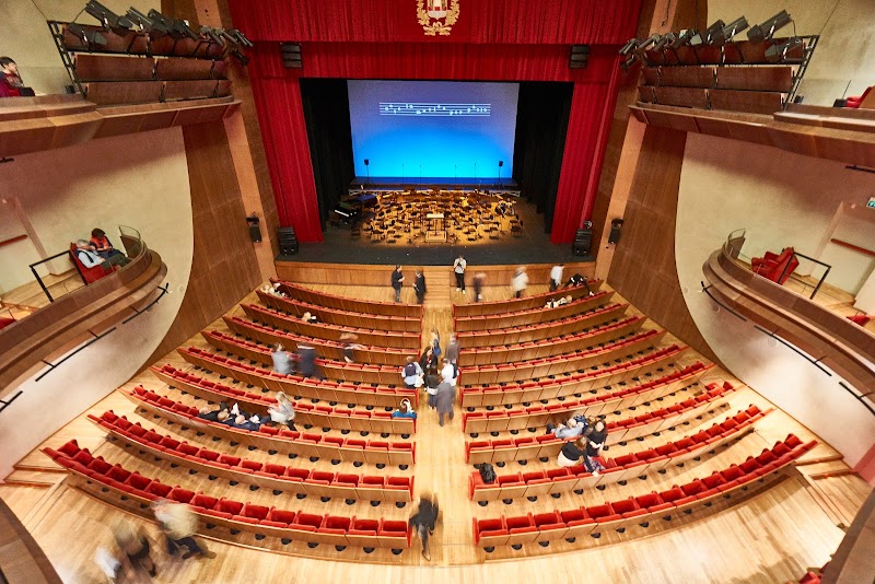Teatro moderno, davvero interessante come lo è la sua stagione di concerti! E mi ha colpito lo sfondo che cambia colore durante la performance dell’artista rendendo l’atmosfera più magica. Maschere molto cortesi e servizio di caffetteria e aperitivo prima del concerto davvero ottimo!